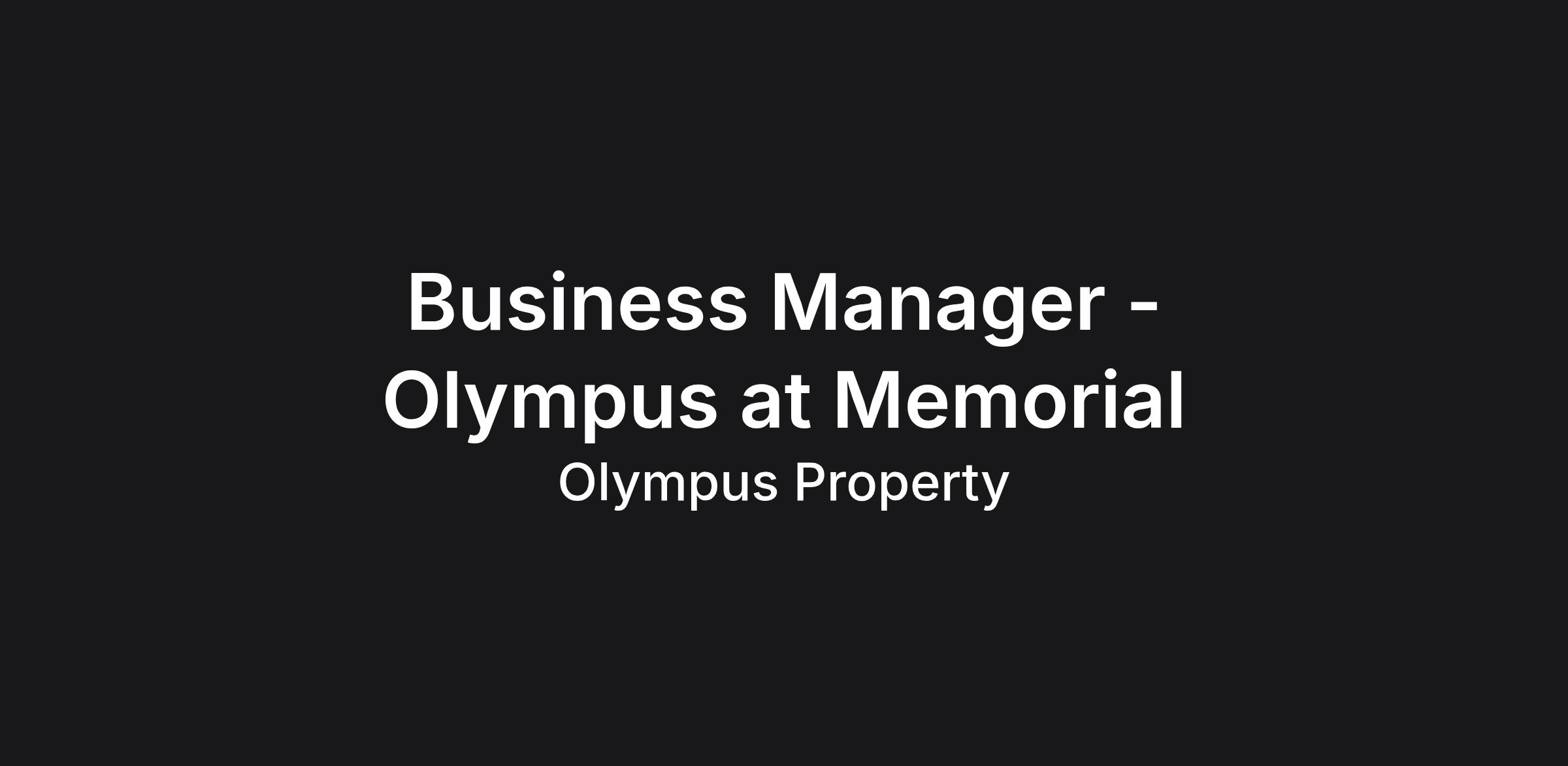 The Business Manager role at Olympus at Memorial is, in plain terms, the property manager position. You're running the asset. That means owning the financial performance, the team, the resident experience, and the vendor relationships all at once. You'll work directly with Regional Leadership to set strategy, build annual business plans, and analyze monthly performance against budget projections. If you're the kind of person who reads a T-12 the way other people read a news feed, you'll be comfortable here.