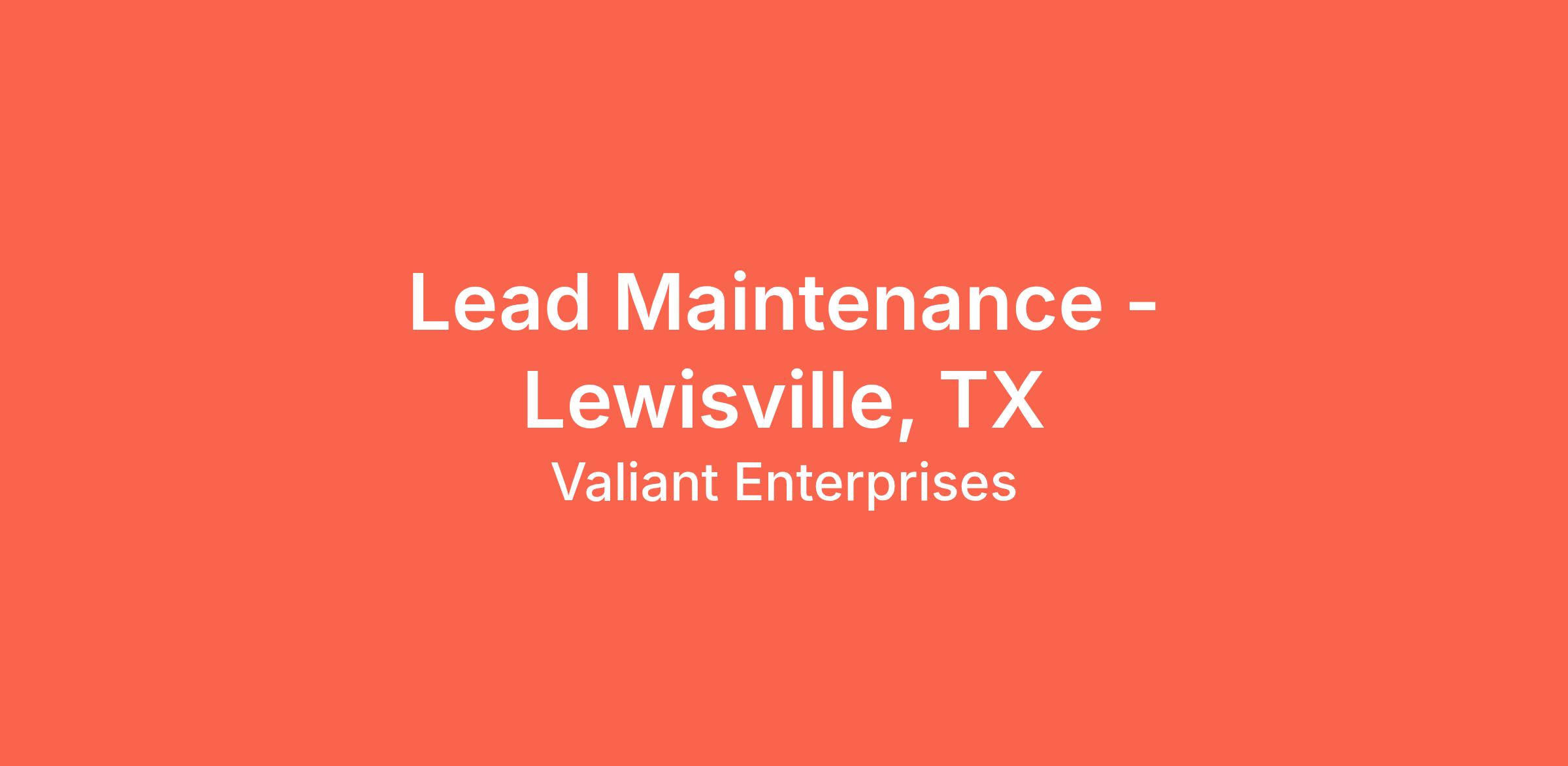 Valiant Residential is seeking Lead Maintenance who is responsible for the overall maintenance of the property under the direction of the Community Manager. The lead maintenance is also responsible for performing repairs in resident apartments and assisting in preparing units for rent (make-ready).