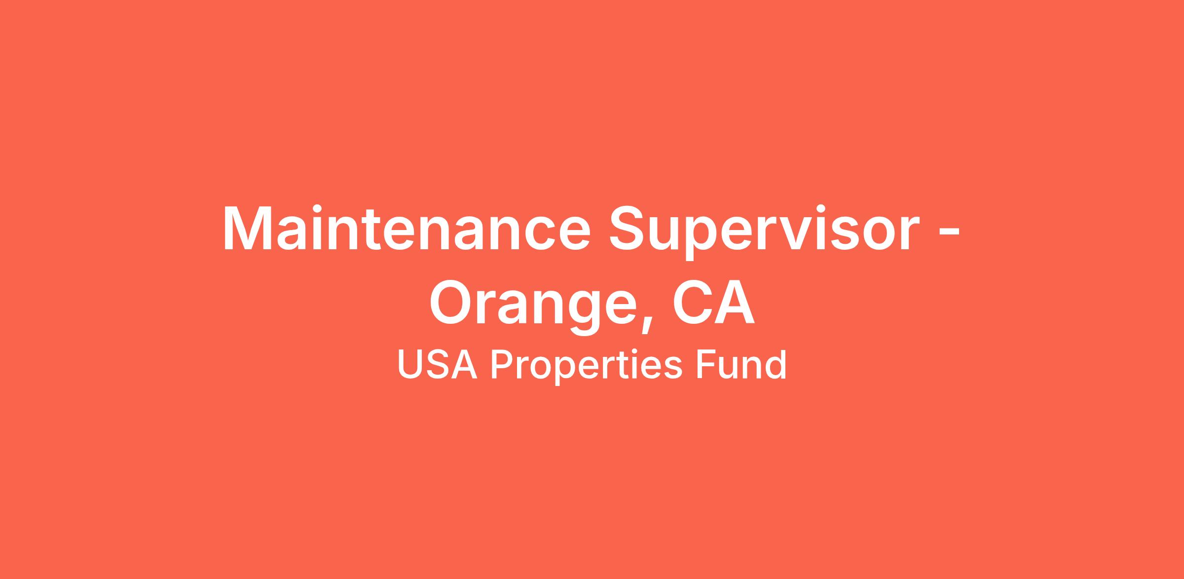 MAINTENANCE SUPERVISOR – The Orion - Orange, CA