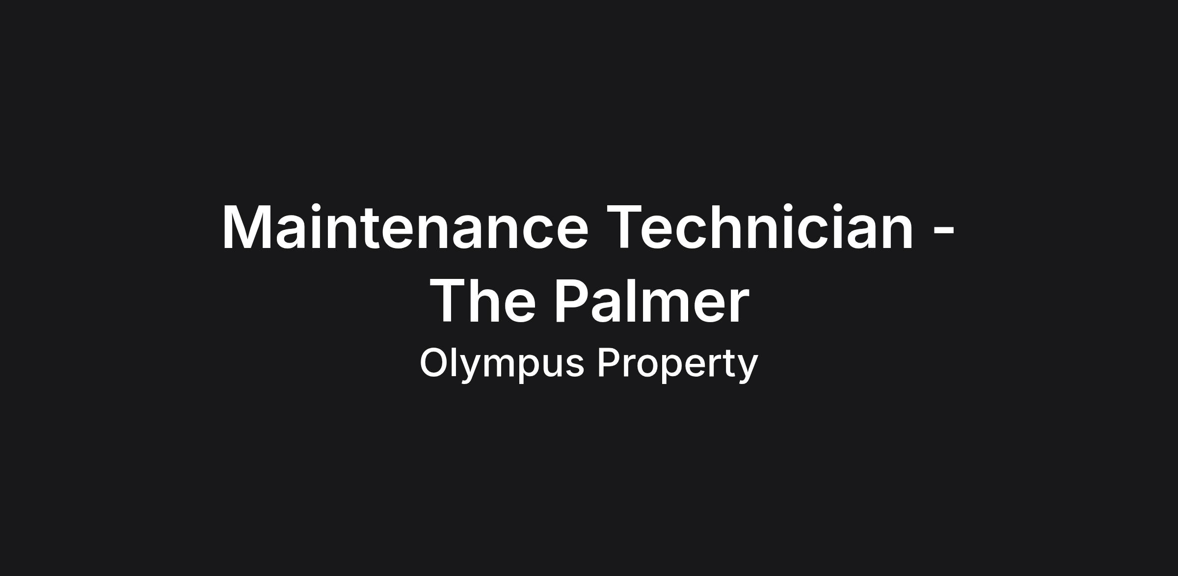 This is a full-time maintenance technician role at The Palmer, a residential apartment community in Charlotte managed by Olympus Property. Your day runs Monday through Friday, 9 AM to 6 PM, with on-call availability for emergencies outside those hours. That part matters. Emergencies don't wait.