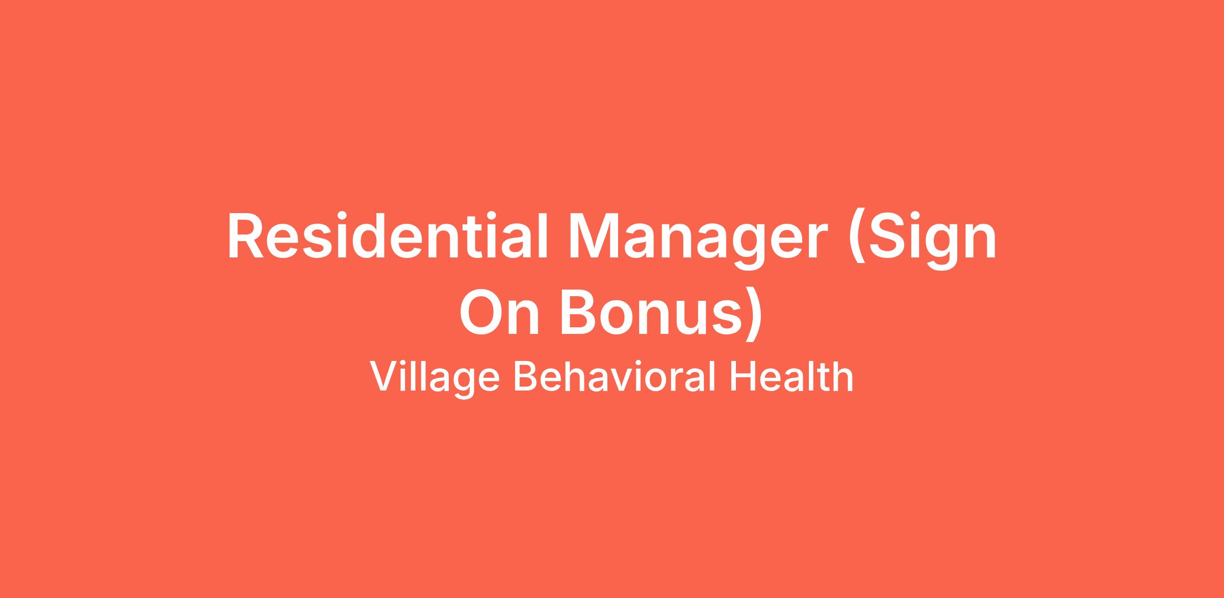 We're seeking an experienced ID/DD Residential Manager to join our growing team at Village Behavioral Health!